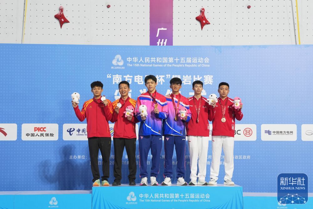 11月14日,第十五届全运会攀岩项目男子速度比赛在广州举行。上海队选手赵义成夺得冠军。 ↑ 冠军上海队赵一成(左三)、亚军江西队黄敬杰(左一)、季军贵州队龙建国(右二)在颁奖典礼上与教练合影。新华社记者晋美多杰摄 ↑上海队选手赵义成(左)与江西队选手黄敬杰在男子金牌冲刺后。赵义成获得冠军。新华社记者杨世耀摄↑上海队选手赵义成(左)与江西队选手黄敬杰在男子速度金牌决赛中。最终,赵义成获得了冠军。新华社记者晋美多吉摄↑上海队选手赵义成在男子速度金牌决赛中。最后,赵一奇eng获得冠军。新华社记者赖向东摄↑上海队选手赵义成(左)与江西队选手黄敬杰在男子速度金牌决赛中。最终,赵义成夺得冠军。新华社记者赖向东摄↑上海队选手赵义成(左)与江西队选手黄敬杰在男子速度金牌决赛中。最终,赵义成夺得冠军。新华社记者赖向东摄↑贵州队选手龙建国(左)与重庆队选手向昌在男子速度铜牌决赛中。龙建国获得第三名。新华社记者晋美多吉摄↑贵州队球员龙建国获胜后庆祝。新华社记者杨世耀 ↑上海队球员赵义成(右)与贵州队球员龙建国赛后。新华社记者 杨诗瑶 摄