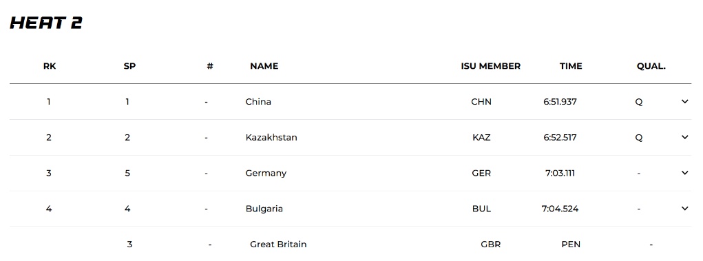 新华社北京10月11日电 据国际滑冰联盟官网消息,2025-2026年国际滑联短道速滑世界巡回赛暨米兰冬奥会资格赛将于当地时间10日在蒙特利尔继续进行。中国队在男子5000米接力四分之一决赛中率先获得团体名,并晋级半决赛。这是男子5000米接力四分之一决赛第二组成绩截图。中国队派出了张柏豪、李文龙、刘少林和林晓军参加当天男子接力比赛。比赛还剩20圈时,英国队处于领先位置。蛰伏在英国队身后的少年张柏豪突然发力,顺利扣球。此后,中国队逐渐扩大领先优势,并在端线越过穆纳。比赛结束,英国队解除了哈萨克斯坦队的挣扎,紧随其后。中国队贯穿端线。不过最终还是被判犯规。哈萨克斯坦队排名小组第二,与中国队一起晋级。中国队将在半决赛中与韩国队、哈萨克斯坦队和荷兰队争夺A组决赛席位。男子1000米预赛中,刘少昂以小组第一的身份晋级四分之一决赛。队友林晓娟和孙虽然预赛早已失利,但在复赛中均以小组第一的成绩晋级复赛八强。女子1500米项目进入四分之一决赛。杨静茹和臧一泽均以小组第二的成绩晋级半决赛,但巩俐却因为太脏而被除名。女子500米预赛,张楚蒂、王欣然分别作为第二组晋级四分之一决赛,范可欣则通过复活赛晋级。名词在团体混合半决赛中,由王欣然、巩俐、张百豪、刘少昂组成的中国队击败了荷兰队,以小组第二名晋级A组决赛。当地时间11日的比赛将产生男子500m、女子1000m、男子1500m和女子3000m接力四枚金牌。
